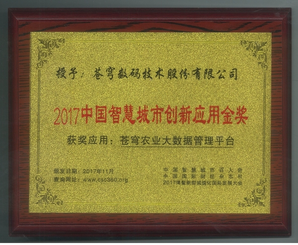 過去幾年中,蒼穹數(shù)碼積極投身到農(nóng)業(yè)改革的浪潮中,并取得不錯成績。此次,蒼穹數(shù)碼憑借“蒼穹農(nóng)業(yè)大數(shù)據(jù)管理平臺”榮獲“智慧城市創(chuàng)新應用金獎”。