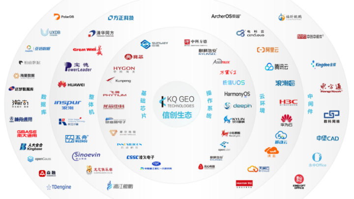 基于自主研發(fā)的跨平臺GIS內(nèi)核技術(shù),KQGIS構(gòu)建了全場景覆蓋的GIS基礎(chǔ)軟件及應(yīng)用生態(tài),實(shí)現(xiàn)從國產(chǎn)操作系統(tǒng)、數(shù)據(jù)庫到云環(huán)境的全鏈路兼容能力。KQGIS采用標(biāo)準(zhǔn)C++語言,構(gòu)建了最關(guān)鍵的GIS內(nèi)核(KQGIS Core),實(shí)現(xiàn)了底層算法、數(shù)據(jù)的統(tǒng)一。在桌面端,采用跨平臺的QT進(jìn)行界面開發(fā),實(shí)現(xiàn)一套代碼跨不同平臺。在WEB端,采用JavaScript進(jìn)行網(wǎng)頁開發(fā),不依賴于操作系統(tǒng)。此外,完成了與國產(chǎn)整機(jī)、云環(huán)境、CPU、GPU等硬件環(huán)境以及操作系統(tǒng)、數(shù)據(jù)庫、中間件、辦公軟件等軟件環(huán)境的全面適配。從而形成了基于KQGIS的跨平臺解決方案(信創(chuàng)GIS替代/升級方案)。